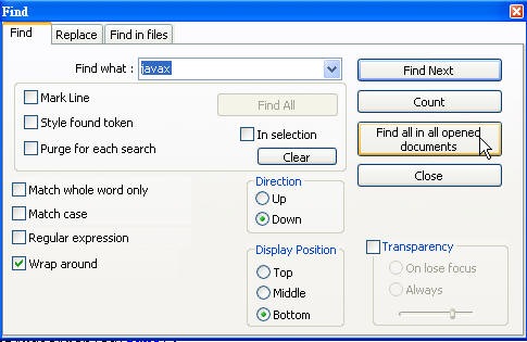 類似 Visual Studio, 你可以一次搜尋所有的開啟文件